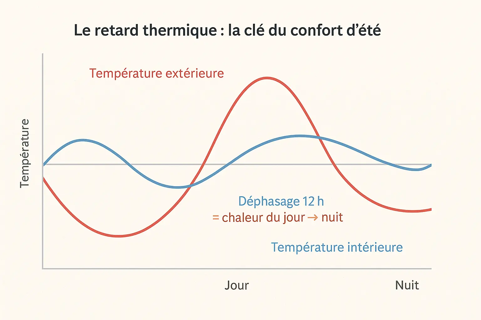 Le déphasage correspond au retard entre le pic de chaleur extérieure et intérieure.