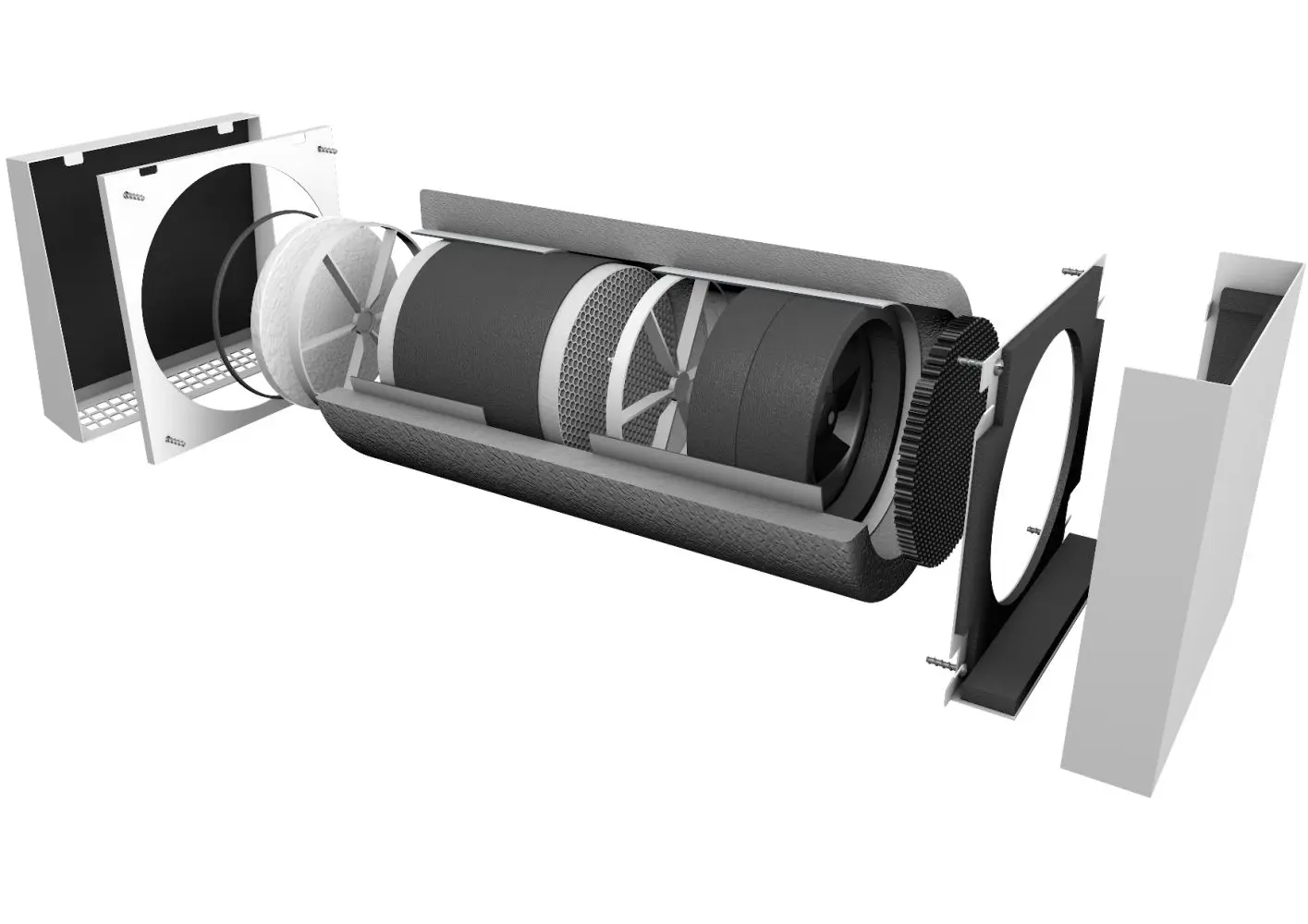 Ces systèmes de ventilation de salon échangent l'air intérieur aussi silencieusement qu'un murmure et utilisent une récupération de chaleur efficace allant jusqu'à 99 %. Cela signifie qu’aucun air de chauffage n’est perdu inutilement. L'échange d'air constant élimine les odeurs et les polluants ainsi que l'humidité des pièces et évite ainsi la formation de moisissures.